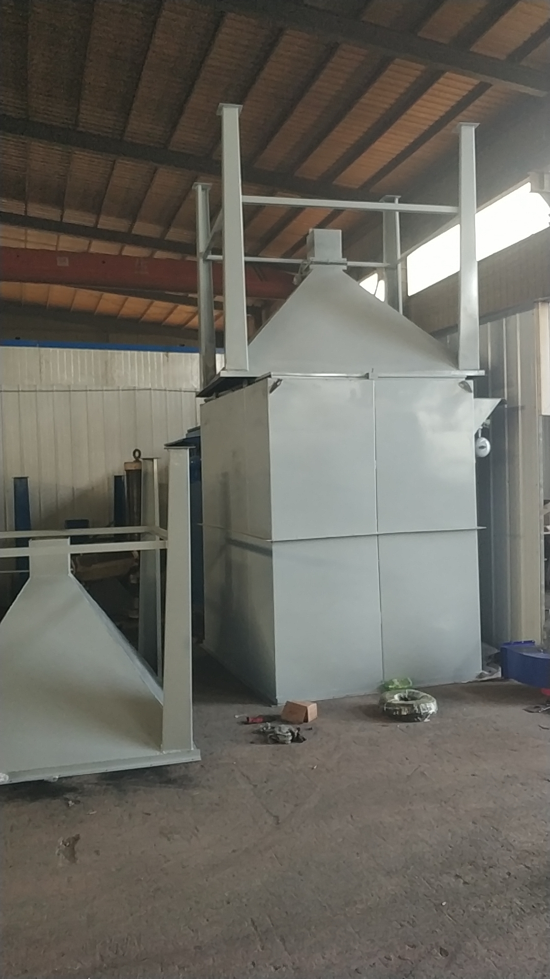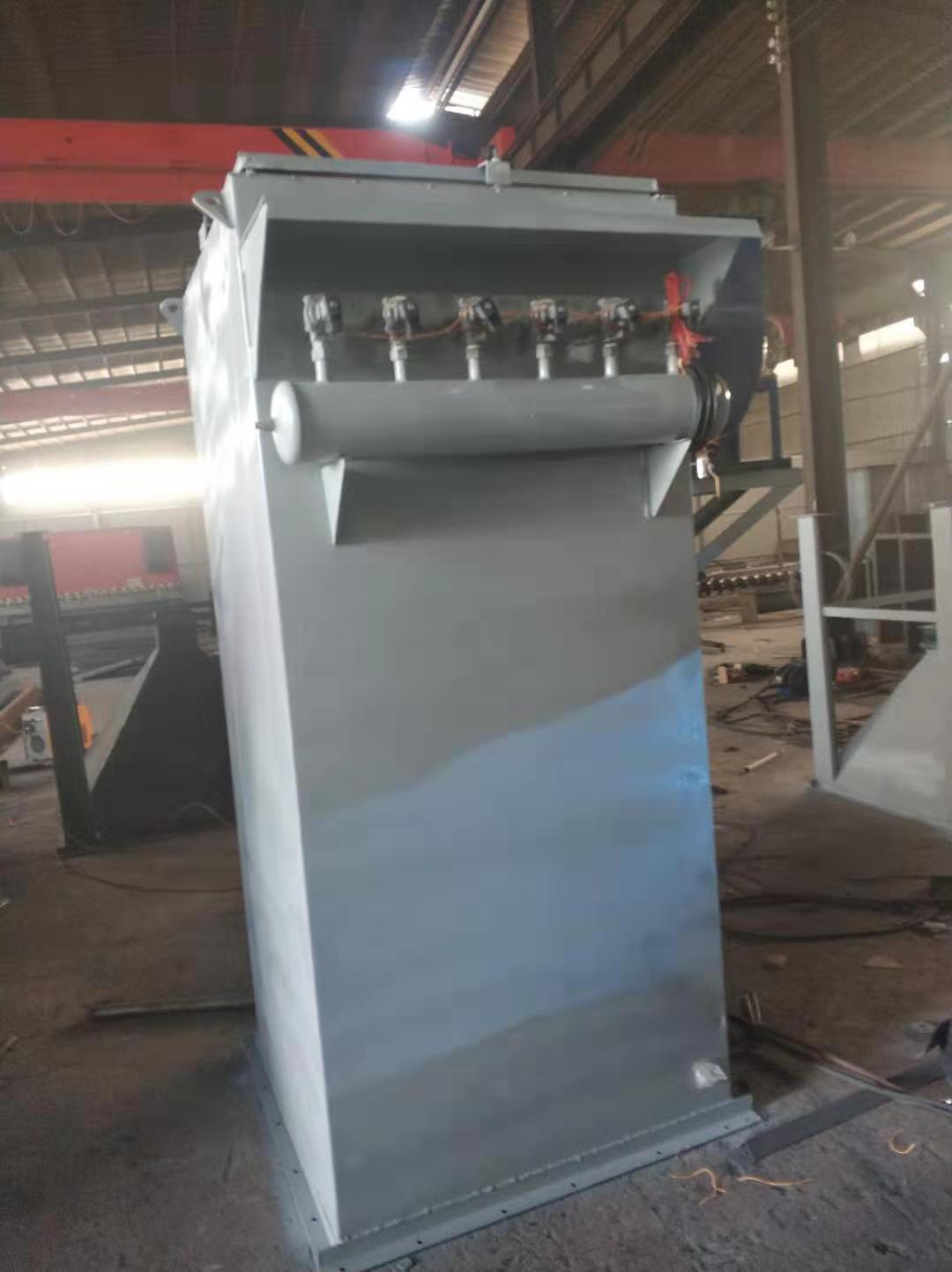采用(0.5-0.7MPa)大流量脉冲阀逐条滤袋喷吹清灰的技术,共有六个规格,每种规格又可分为标准带灰斗式A型和敞开法兰式(无灰斗)B型二种。其结构主要由过滤室、滤袋、净气室、灰斗、卸灰阀、脉冲喷吹清灰装置、电控箱组成,箱体全部采用焊接结构。检修门用泡沫胶条密封,保证除尘器严密不漏风。与国内其它单机相比,具有清灰动能大,清灰效率高的特点。并且体积小,重量轻结构简单紧凑、安装容易、维护方便。