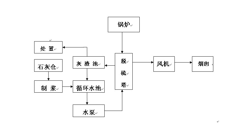 烟气通过进烟道进入文丘里,在喉部的入口被水均匀的喷入,由于烟气高速运动,因此喷入的水被其融化成细小的水雾湿烟气中的灰料,这样,灰料与水滴就发生了碰撞凝聚,尤其是料径细小的灰尘料可以被水雾水溶。达到一次除尘和脱硫这些为灰料的分离做好充分的准备,此后进入筒体,迅速降低温度的烟气继续冲击池内的石灰水,烟气中的粉尘和SO2与池中的石灰水反应生成硫酸盐,在惯性力、重力、附着力、凝聚力的作用下沉入水底完成第二次脱硫过程,被烟气激起的水花,水雾与洗涤后的烟气在风机引力下,气水同时抬开,使烟气与石灰水充分反应,然后经叶轮脱水器进行气水分离,水经泄水管流进水池,并使烟气完成第三次除尘与脱硫,净化后的气体经过风机排入大气。